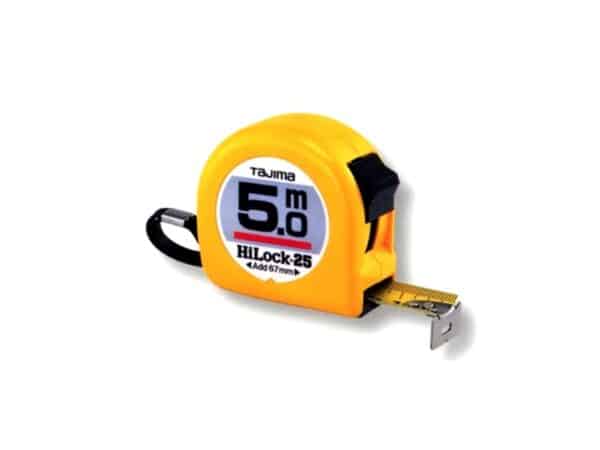 Flessometro hi lock cassa arrotondata in resina termoplastica gilla, elevata resistenza, meccanismo interno con ritorno automatico e blocca nastro, alta rigidita’ con stampa bicolore, clip d’aggancio posteriore