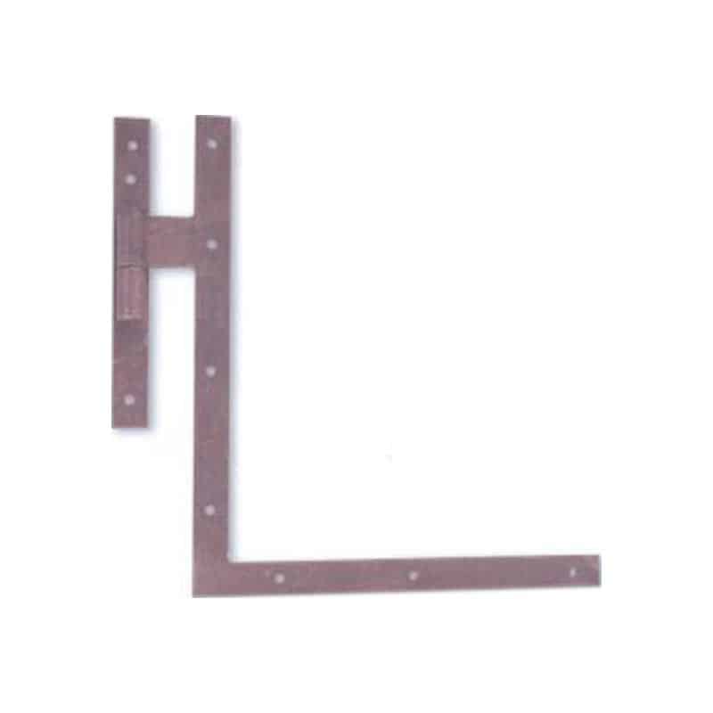 Squadra forgiata con cardine a telaio senza cerniera per scuretto.